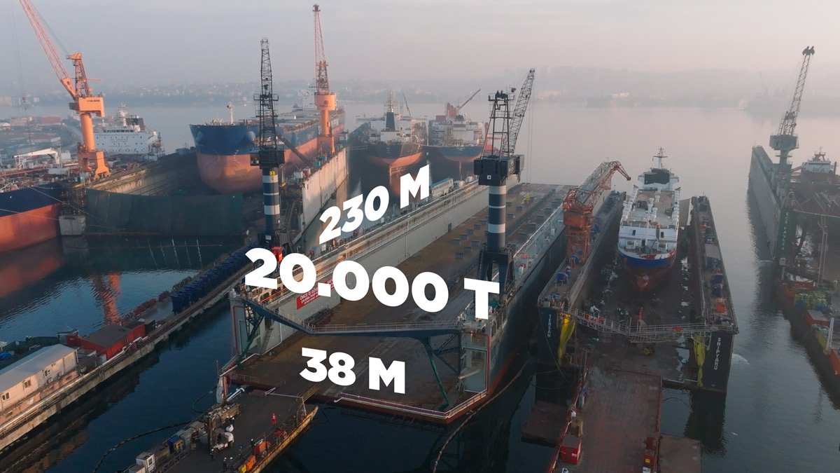 Desan operates three fully equipped steel floating docks, enabling safe and efficient docking for vessels up to 234 meters in length and 49,000 tons lifting capacity.